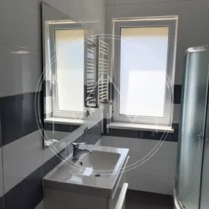 – łazienka (5,22 m²) – wyposażona w kabinę prysznicową, umywalkę wraz z meblami łazienkowymi,
