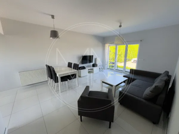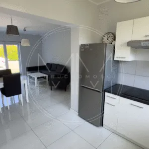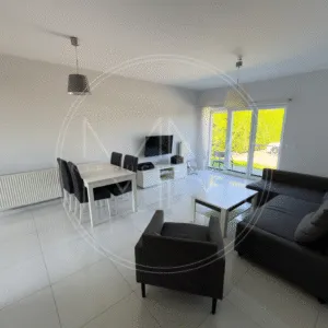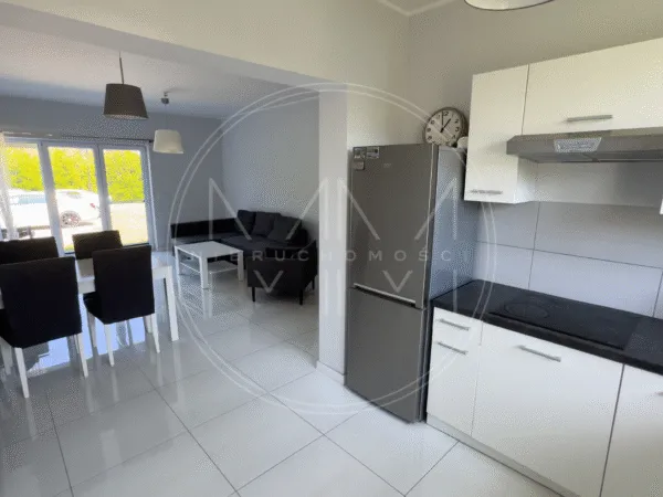 – pokój dzienny (22,74 m²) – z wyjściem na taras o powierzchni 8,00 m² wyposażony w stół wraz z krzesłami, meble salonowe wraz z kanapą oraz stolikiem kawowym, szafka RTV wraz z telewizorem.                                                                                 – kuchnia (7,53 m²) wyposażona w meble kuchenne, zmywarkę, płytę indukcyjną, piekarnik, lodówkę, mikrofalówkę, stół wraz z krzesłami, meble salonowe wraz z kanapą oraz stolikiem kawowym, szafka RTV wraz z telewizorem.