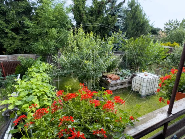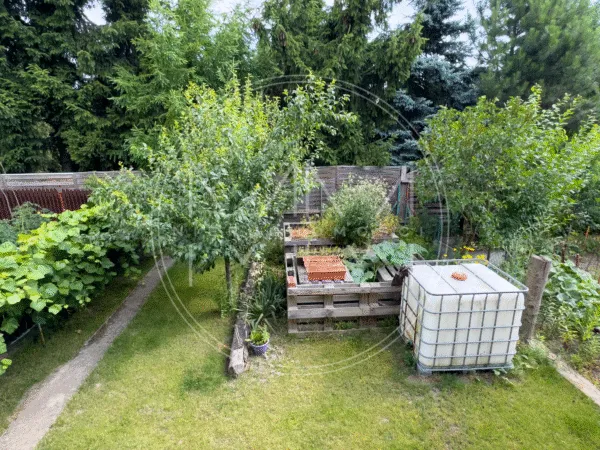 – piwnicy składającej się z 4 osobnych pomieszczeń, a także przestronnego ogrodu z możliwością ciekawej aranżacji ( ogród około pow. 100 m²)